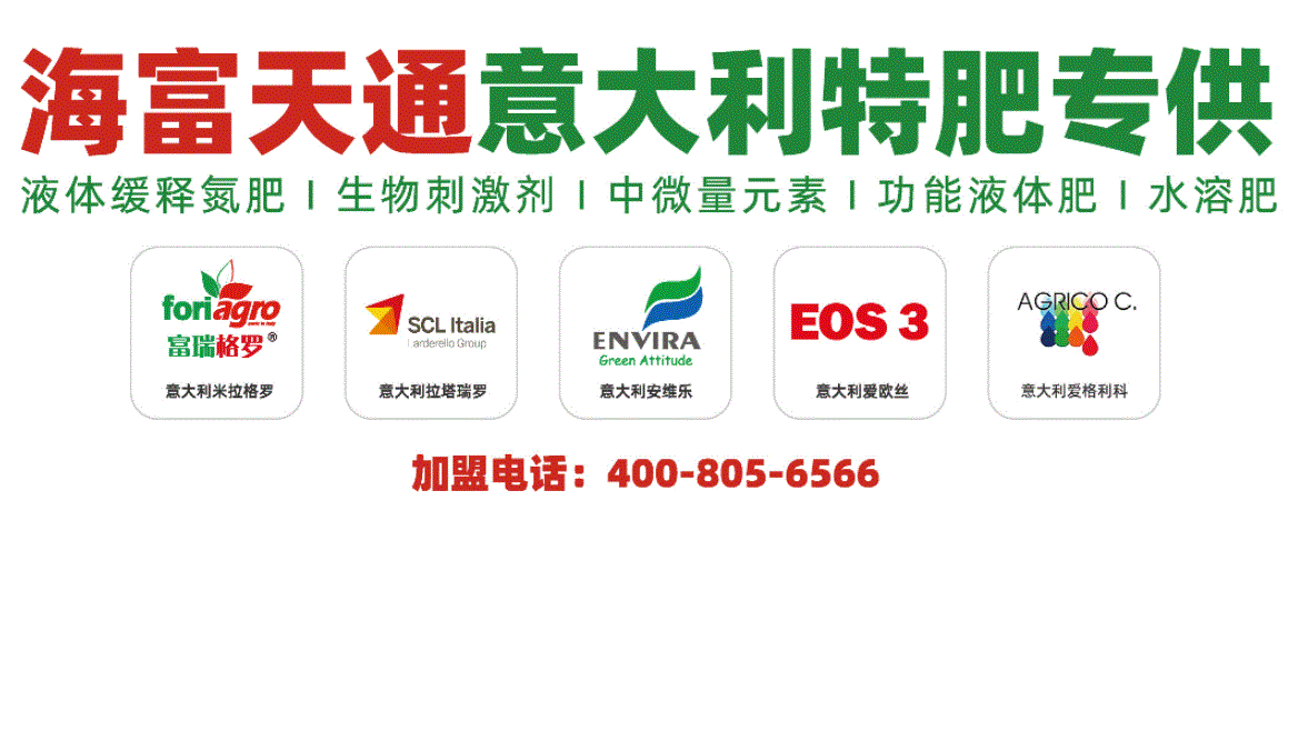 意大利特肥供應平臺——北京海富天通農業科技有限公司,前身為意大利拉塔瑞羅化學股份公司(現名意大利SCL集團)北京辦事處和意大利愛歐絲公司北京辦事處。從事中國與意大利間國際貿易超過20年,在中國推廣意大利特種肥料接近20年,憑借豐富的中國本土經驗結合意大利產品的優良品質催化出累累碩果。公司2004年起與意大利SCL集團合作,最早引進了富利硼、富利蓋、富利爾氮液等優質特肥產品,至今仍為意大利SCL集團在中國的重要合作伙伴。2019年起與意大利米拉格羅國際有限公司合作,共同推廣“富瑞格羅FORIAGRO”品牌水溶肥、功能液體肥、生物刺激素、中微量元素肥料、液體緩釋氮等產品。